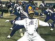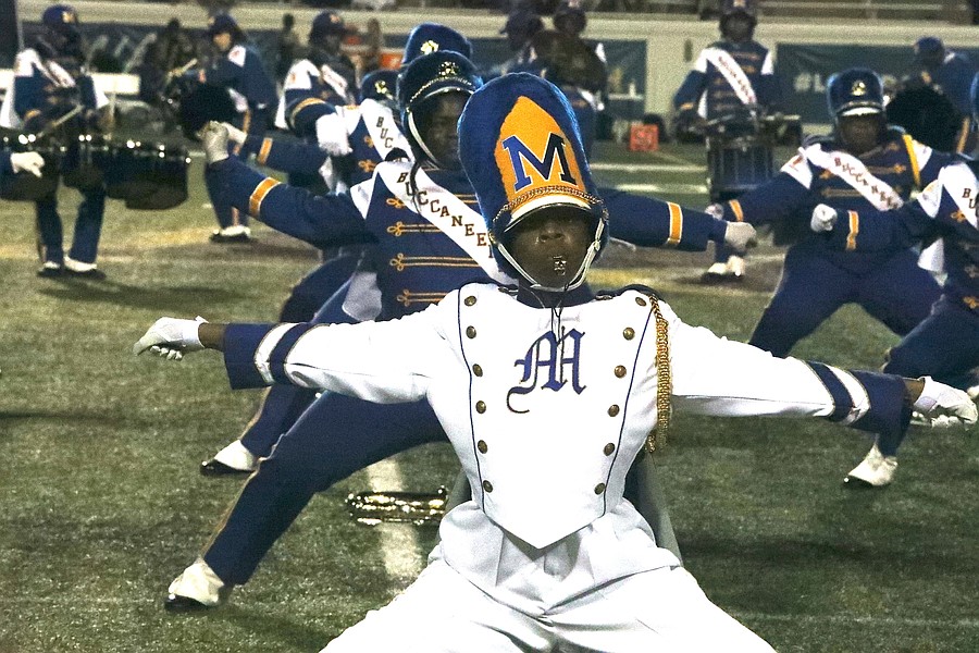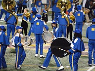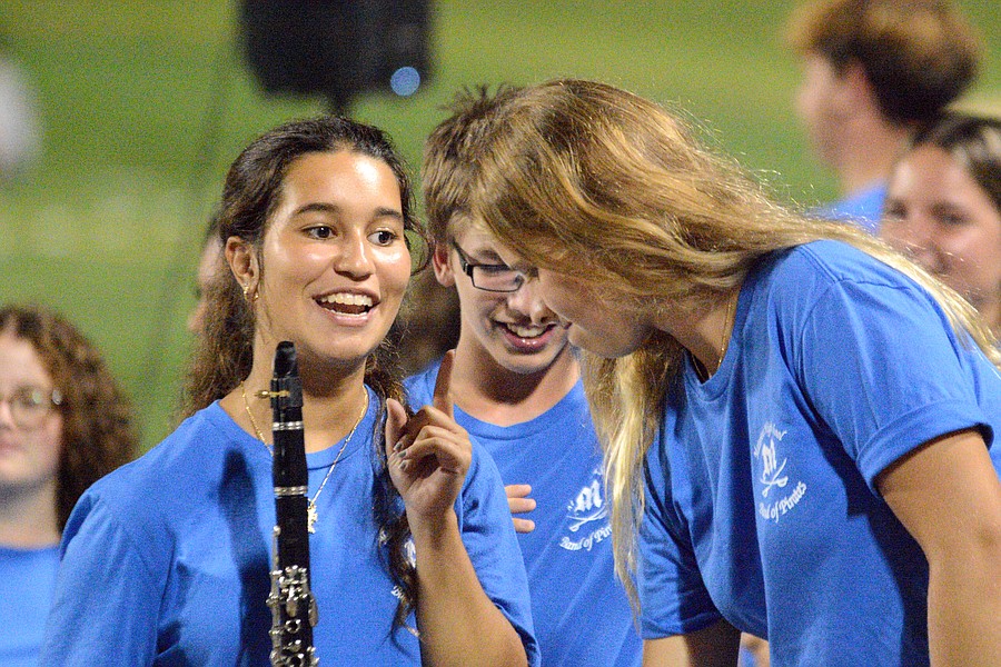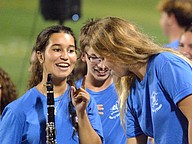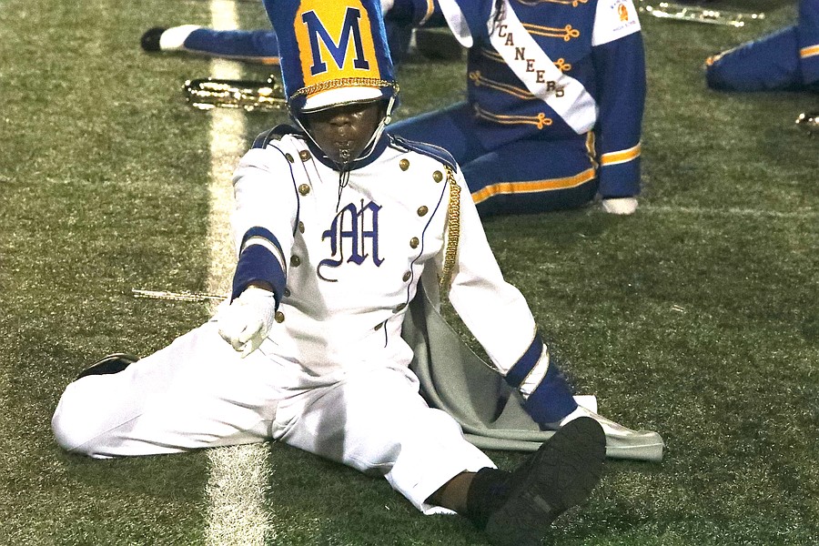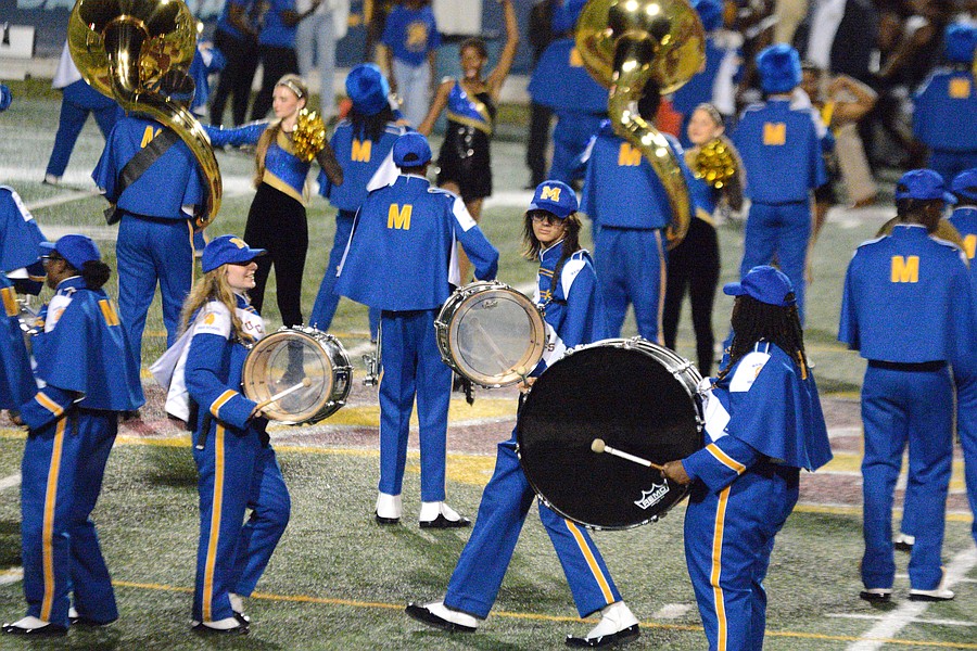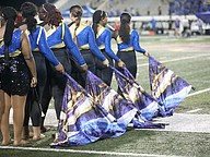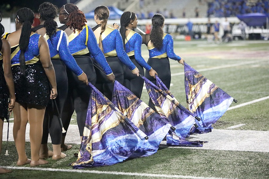 Mainland's color guard gets set to walk onto the field for the Bucs' Homecoming show. Photo by Brent Woronoff