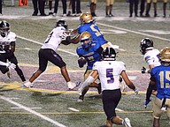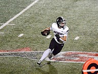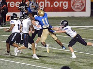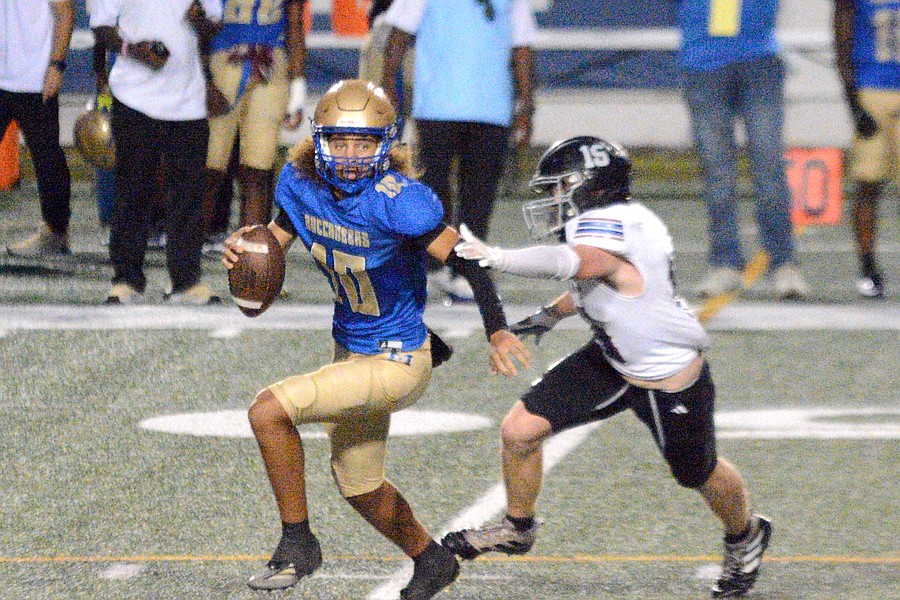 Mainland quarterback Sebastian Johnson looks downfield while under pressure. Photo by Keishia McLendon