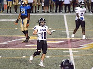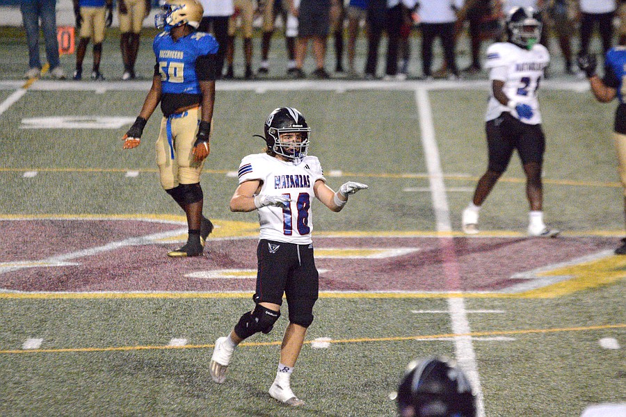 Matanzas' Cooper May celebrates his interception. Photo by Brian McMillan