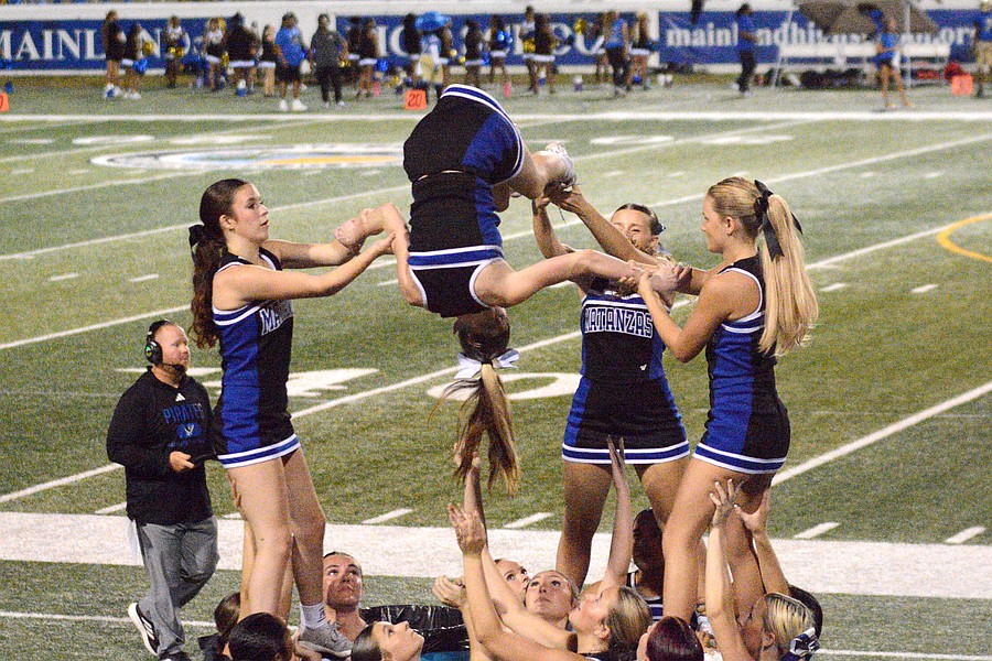 Mainland cheerleaders perform a stunt. Photo by Brian McMillan