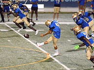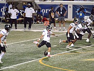 Mainland's David Aponte boots an extra point. Photo by Brian McMillan