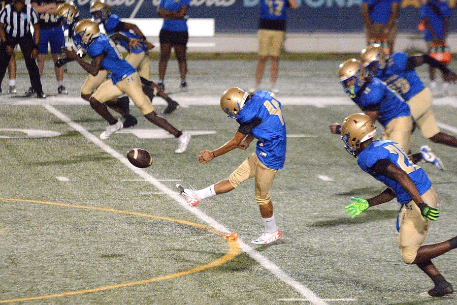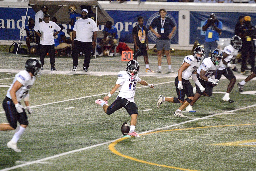 Mainland's Chris Butler punts the ball. Photo by Keishia McLendon