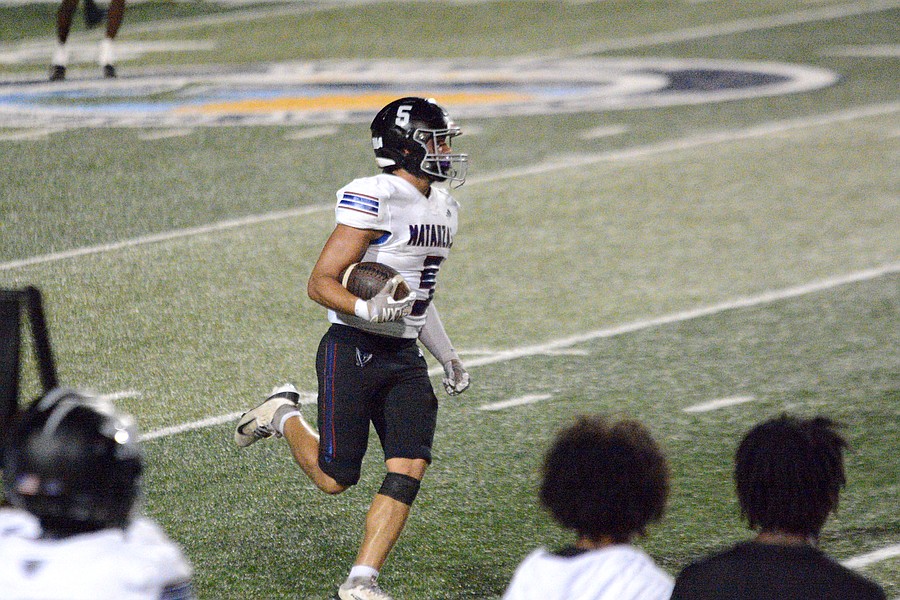 Matanzas' Cooper May returns a second-quarter interception 30 yards into Mainland territory. Photo by Brian McMillan