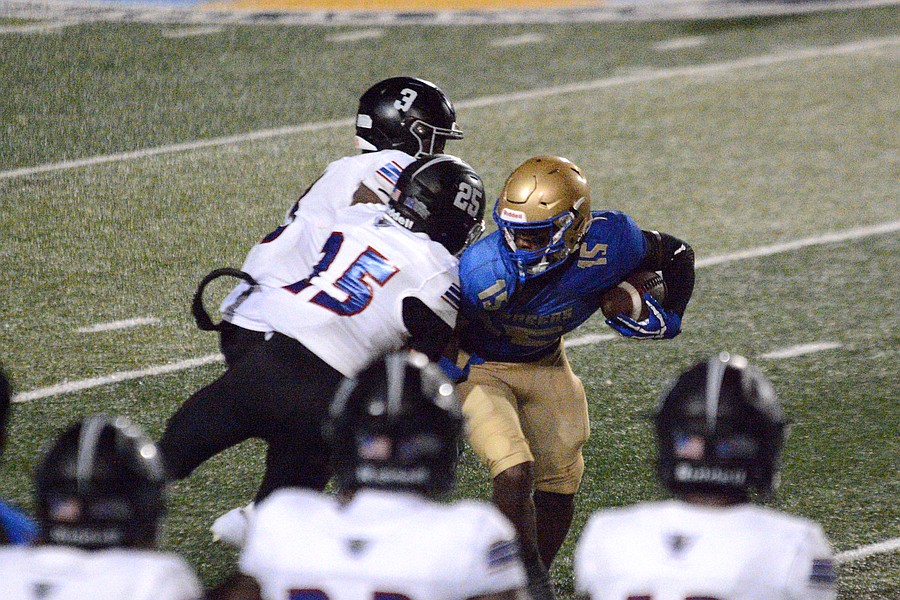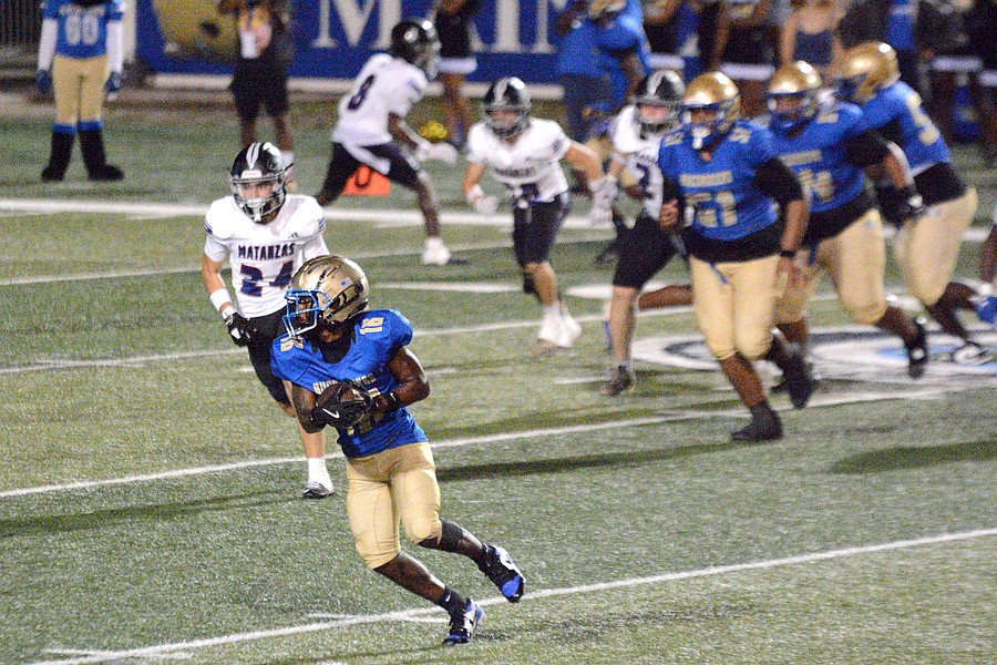 Braylyn “Juice” Simmons seems to enjoy playing against Matanzas High School. Simmons accumulated 196 offensive yards and a touchdown in Mainland’s 34-17 victory over the Pirates on Thursday, Sept. 25, at Daytona Stadium.
