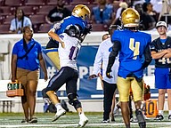 In the second half, the Bucs shut the Pirates down while adding two touchdowns and two David Aponte field goals. Johnson finished with 284 yards passing with two touchdowns and two interceptions.