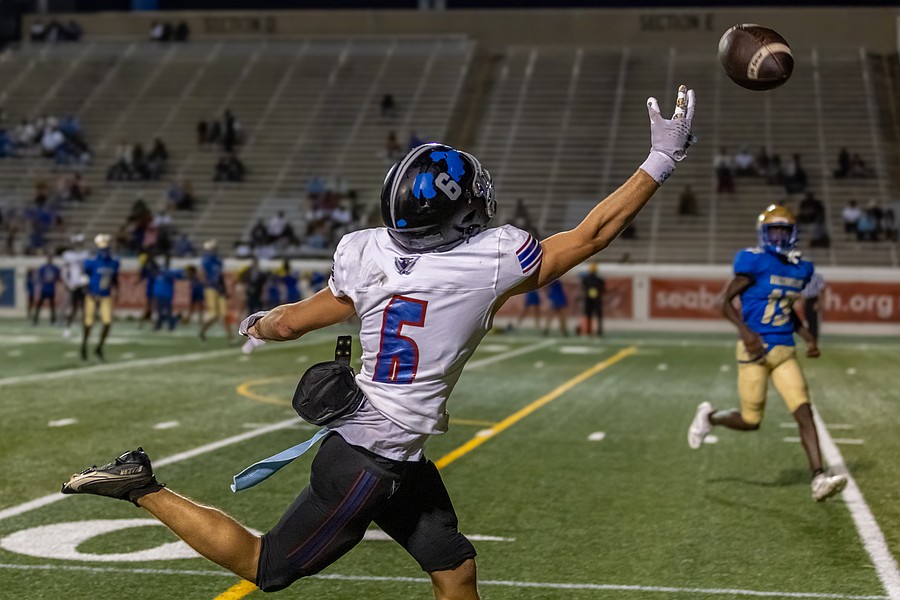 Matanzas receiver Thomas Larywon (6) reaches for a pass. Photo by Keishia McLendon.