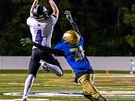 But the turning point may have come after Pirates defensive back Jez McCoy intercepted another Mainland pass and returned it 72 yards to the Mainland 1-yard line. A bad snap and a penalty pushed Matanzas back to the 19 and the Pirates settled for a 37-yard Alex Procek field goal. With 9 seconds left in the second quarter, Flores caught a 14-yard touchdown pass from Sebastian Johnson to narrow the Pirates’ lead to 17-14.