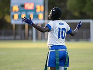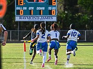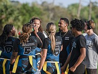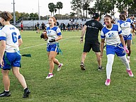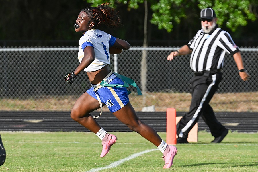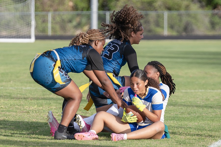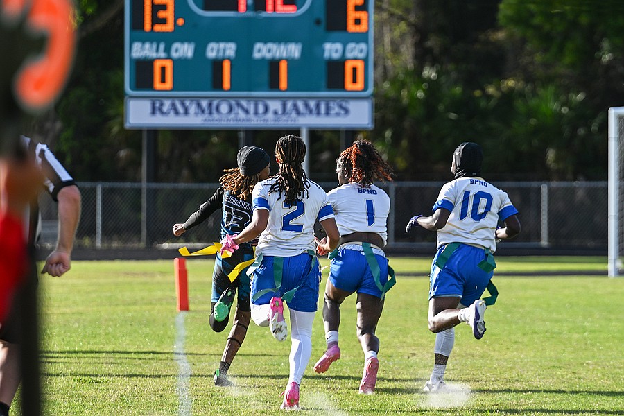 Natalie “Uno” Williams finished the game with one touchdown as a running back, tight end Terri Williams had one touchdown, and tight end/linebacker Zariah Blue solidified the win with a fourth-quarter touchdown reception. Blue recently committed to the Daytona State College flag football team.