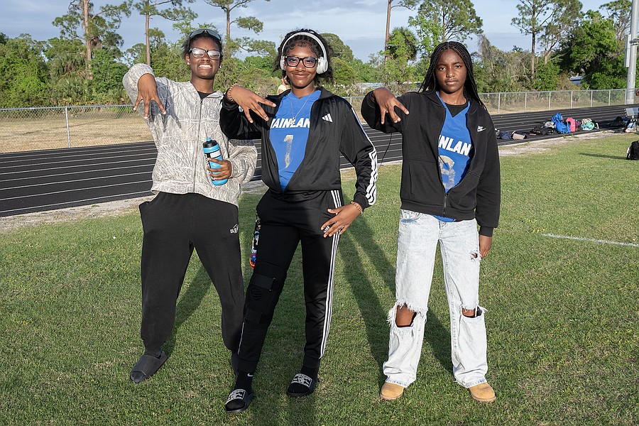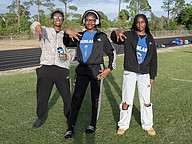 Mainland students (left to right) Ta'Naijah Martin, Khaliaa Ross and Za'nyleh Tarpley support the flag football team at the first game of the Five Star Conference against Atlantic on Monday, March 30. Photo by Michele Meyers
