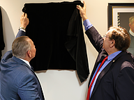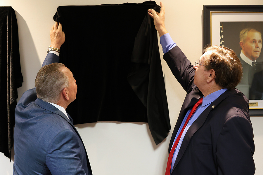 State Attorney R.J. Larizza and Steven Alexander unveil his portrait. Photo courtesy of Haley Harrison