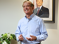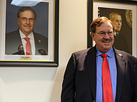 John Tanner stands in front of his portrait. Photo courtesy of Haley Harrison