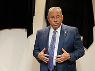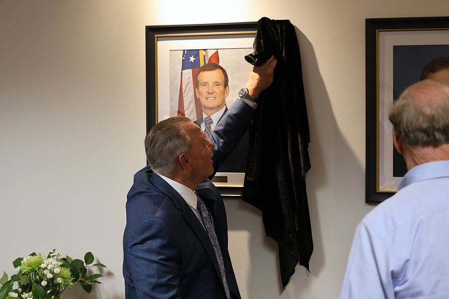 State Attorney R.J. Larizza unveils John Tanner's portrait. Photo courtesy of Haley Harrison