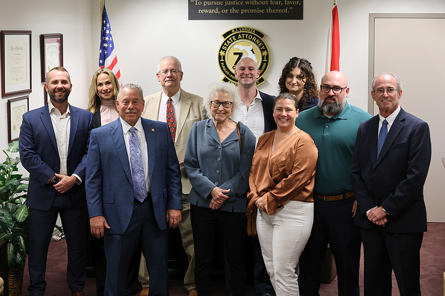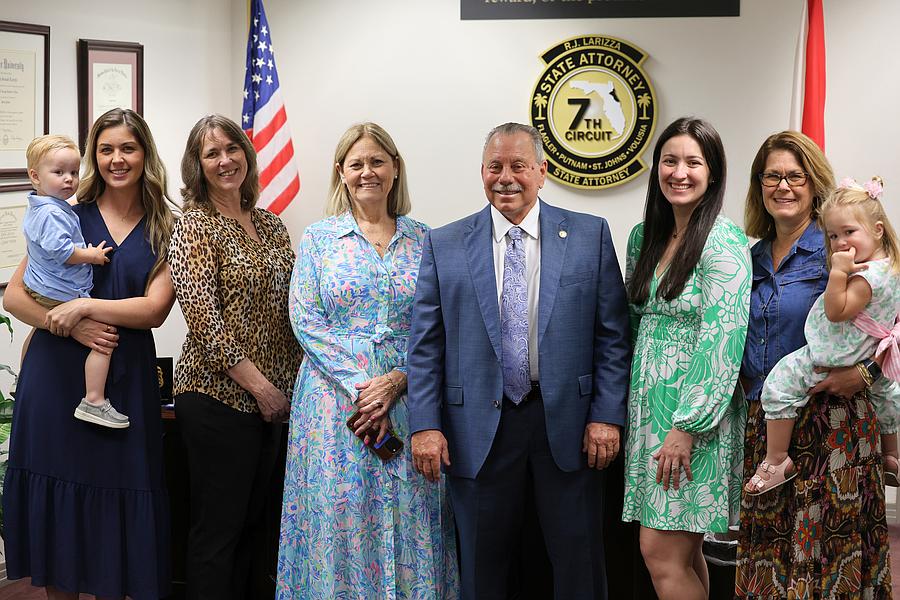 State Attorney R.J. Larizza and the family of Dan Warren. Photo courtesy of Haley Harrison