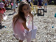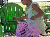 A young girl fills her basket during Saturday morning’s Easter egg hunt. Photo by Suzanne McCarthy
