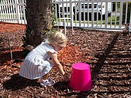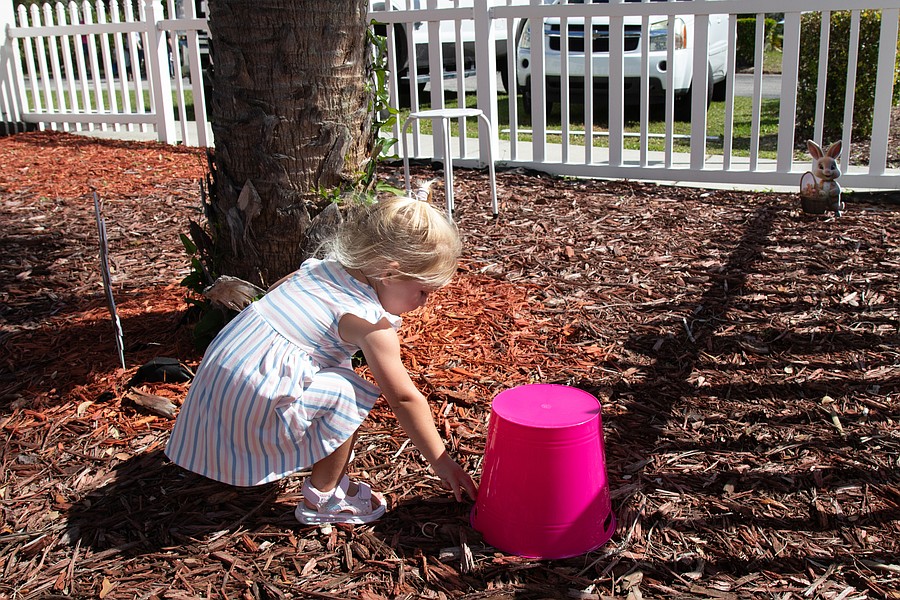 Iris Lucas, 22 months, hunts for Easter eggs at Tomoka United Methodist Church. Photo by Suzanne McCarthy