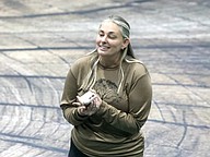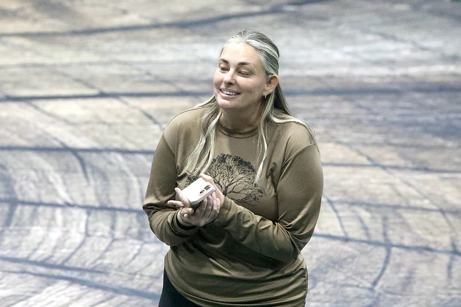 Starlets coach Lauren Albert introduces the performance. Photo by Brent Woronoff