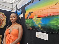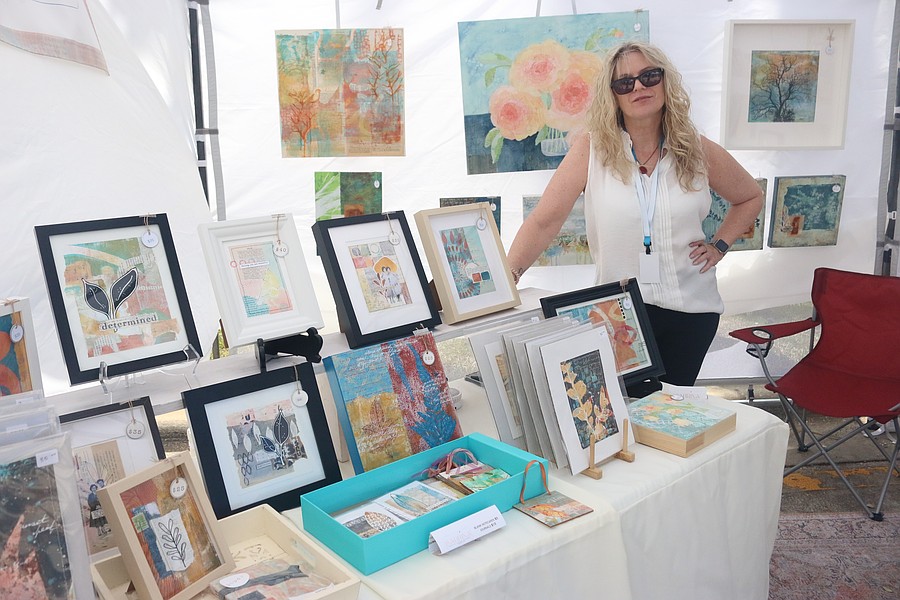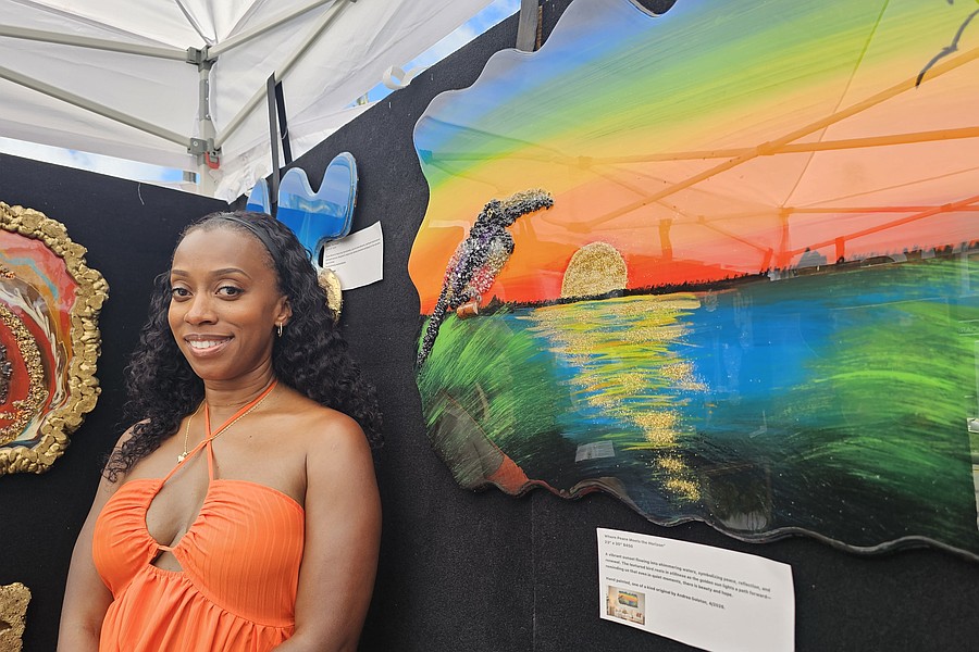 Andrea Golston won the People's Choice award at the 2026 Daytona Beach Arts Festival for her mixed-media resin pieces. Photo by Sierra Williams
