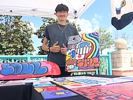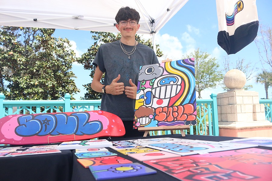 Artist Hayden Rodgers, 16, shows off is artwork at the Daytona Beach Arts Festival. Photo by Sierra Williams