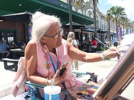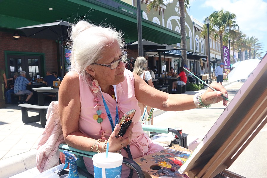 Artist Mara de Rojas paints outside her booth at the Daytona Beach Arts Festival. Photo by Sierra Williams