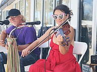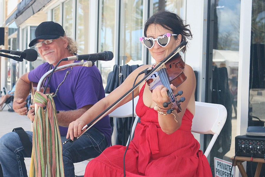 Violinist Kristie DeLuca and guitarist Phil Weidner, aka performer "Fylo Zoet," perform together at the Daytona Beach Arts Festival. Photo by Sierra Williams