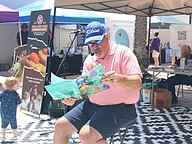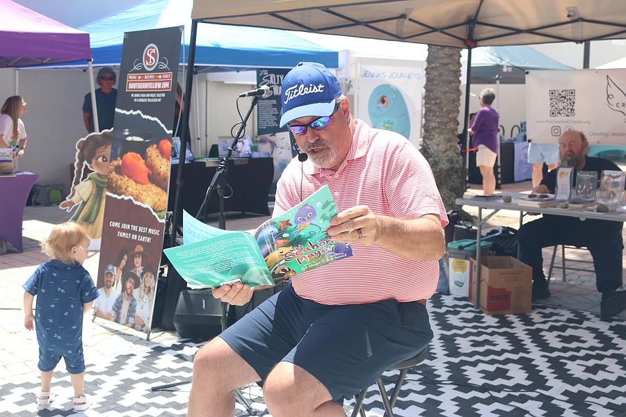 Author Ted Sheppe reads his book, "The Seahorse Mayor," at the BookEnd at the Daytona Beach Arts Festival. Photo by Sierra Williams