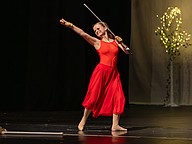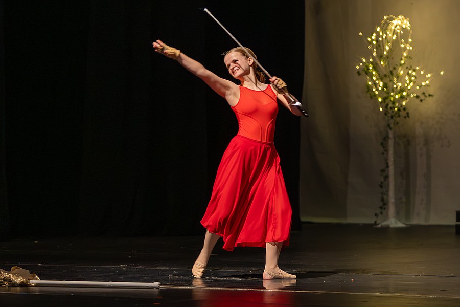 Betsy Reece performs a colorguard routine to “I'm Still Standing”. Photo by Sydney Tevin