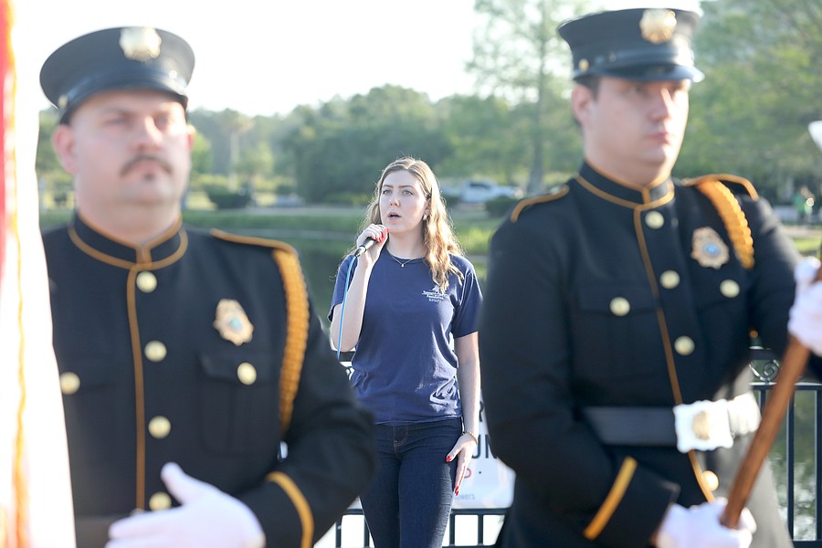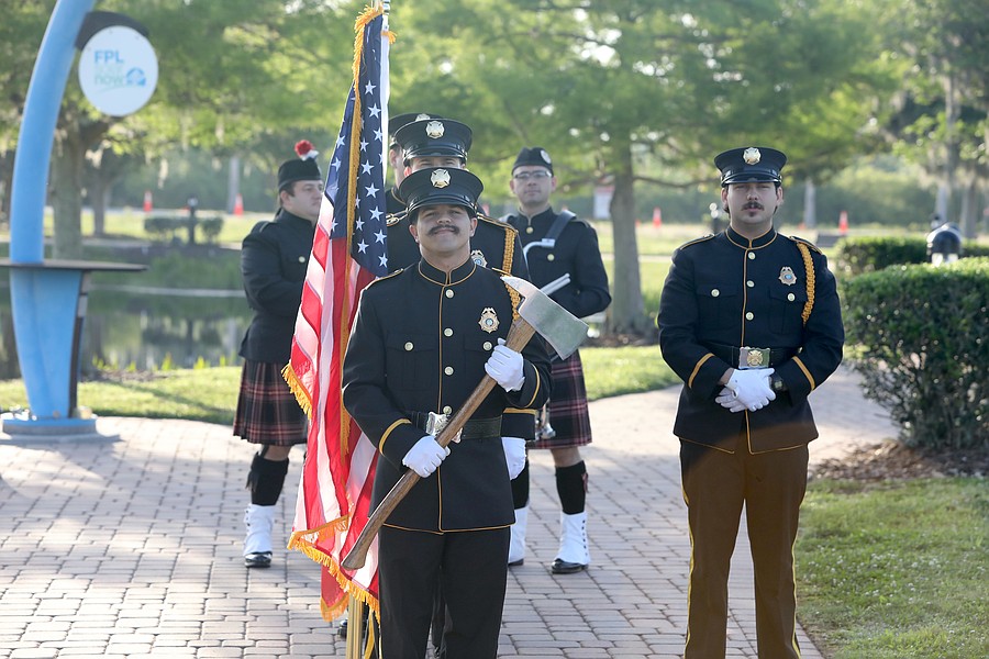 The Palm Coast Fire Department Honor Guard presented colors. Melanie DeMartino sang the national anthem.