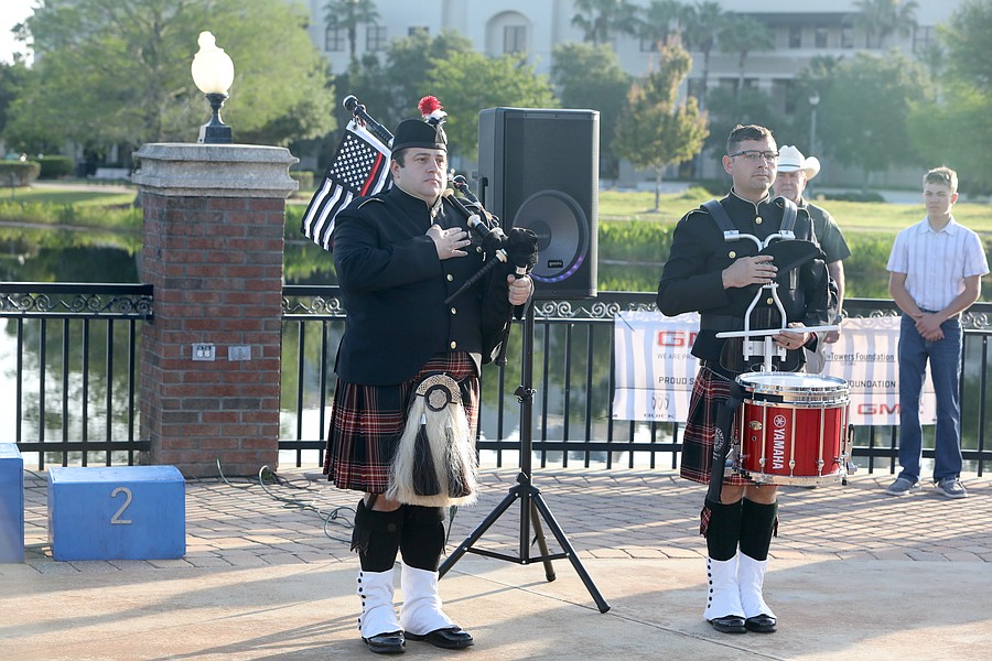 Palm Coast Fire Department Pipes and Drums during the pre-race ceremony. Photo by Brent Woronoff