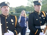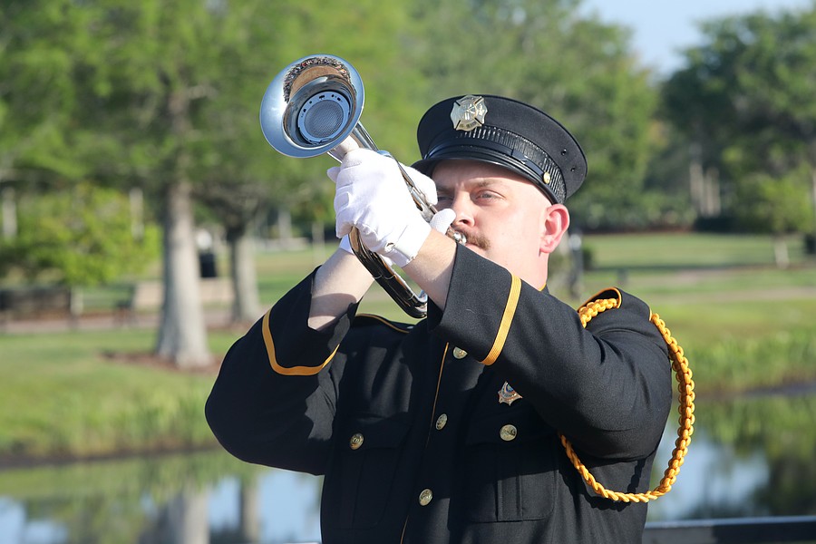 Palm Coast Fire Department's Caleb Dann plays Taps to close the pre-race ceremony at the Tunnel to Towers 5K in Palm Coast. Photo by Brent Woronoff