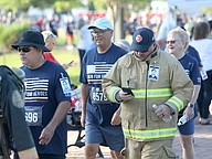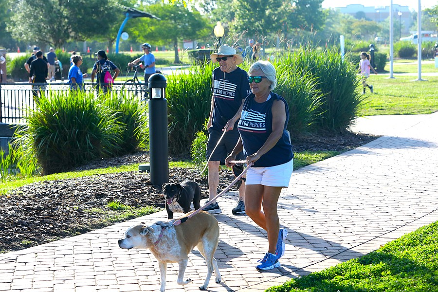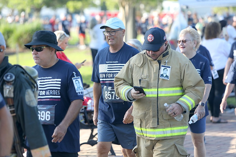 Over 300 runners and walkers finished the fifth annual Palm Coast Tunnel to Towers 5K on Saturday, April 18, at Central Park in Town Center. Some wore “I Run for Heroes” T-shirts, honoring specific fallen heroes. Some firefighters ran in full bunker gear.