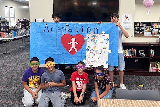 On April 15, the high school students visited Rymfire, reading stories in English and Spanish to the elementary students about gaining “superpowers” of honesty, patience, acceptance, love and gratefulness. After the students completed an activity related to the book, they received a superhero cape.