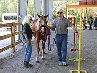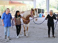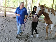 The students have learned how to put a halter on the horses, to groom them and are beginning to walk with them. Aguirre said one goal is to have them walk independently with their horse.