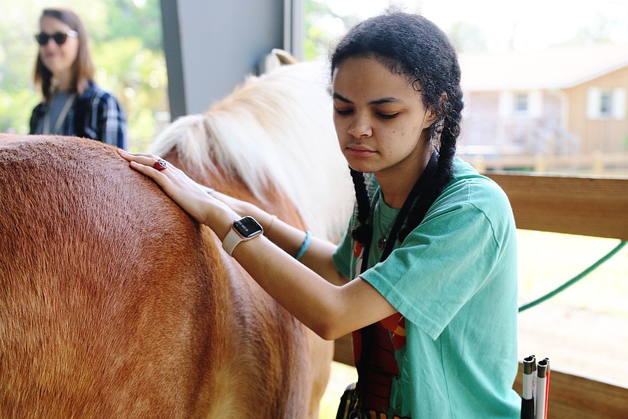 Since February, five students from the Conklin Davis Center for the Visually Impaired have spent their Tuesday mornings at Whispering Meadows Ranch.