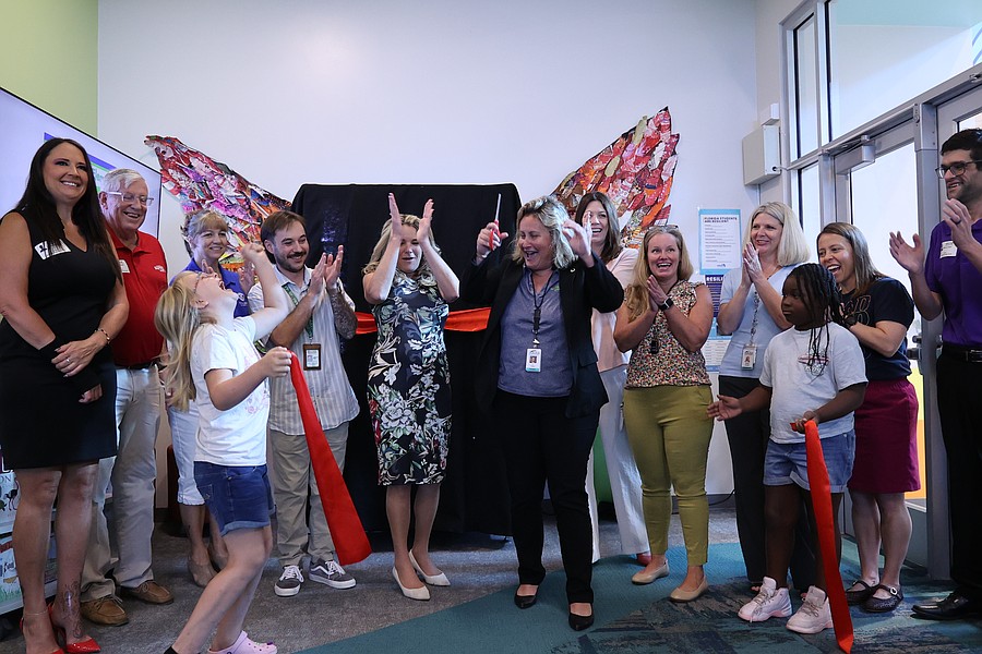 Beachside Elementary celebrates the unveiling of the new book vending machine. Courtesy photo