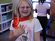 A student smiles during the unveiling of the new book vending machine. Courtesy photo