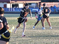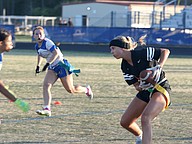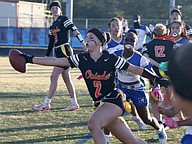 After forcing a punt with less than two minutes left in the game, the Bucs drove from their own 10-yard line to just inside the 40 (midfield in flag football) with Vivienne Becker catching a long pass from Williams. But Scharf's fourth-down interception clinched the district title for the Lions.