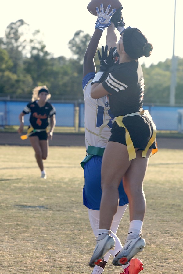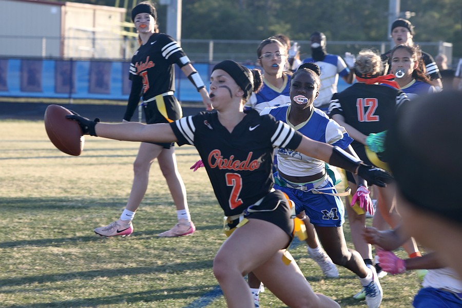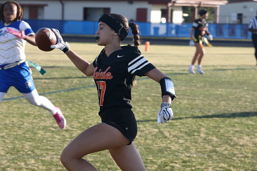 Mainland's Zariah Blue intercepted a pass early in the second quarter, but the Bucs’ ensuing drive ended with an interception by Oviedo's Julietta Decesare.