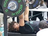 His final snatch (195 pounds) and clean and jerk (260) were five pounds under his PR. His bench press (225) tied his PR.
