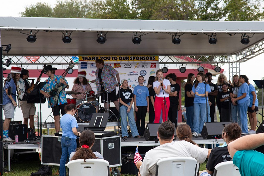Seabreeze High School “Mamma Mia!” director Jill Kachanouskaya introduces the cast during Founder's Day in Ormond Beach. Photo by Suzanne McCarthy