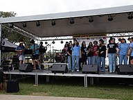The Seabreeze High School cast of “Mamma Mia!” performs during Founder's Day in Ormond Beach. Photo by Suzanne McCarthy