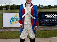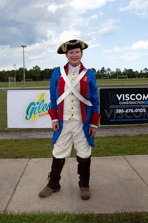 Debbie Kruck-Forrester, dressed as an American Revolutionary War soldier, works the Ormond Strong booth at Founder's Day. Photo by Suzanne McCarthy