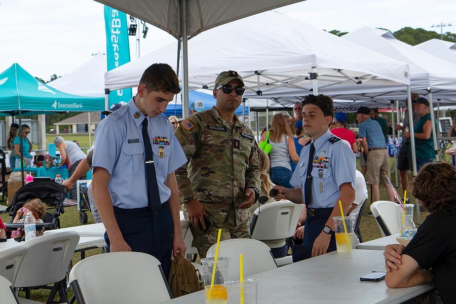 Civil Air Patrolman Romaguera stands with U.S. Air Force Auxiliary members at Founder's Day in Ormond Beach. Photo by Suzanne McCarthy