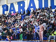 The crowd cheers after Mainland scores against Atlantic at the Five Star Conference championship game on Friday, Jan. 30 at the Vince Carter Athletic Center. Photo by Michele Meyers