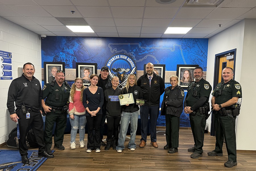Matanzas High sophomore Ella Forbes receives Sheriff Rick Staly’s “Great Kid” Award for December 2025. Courtesy photo