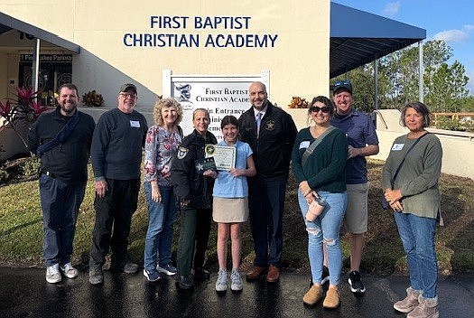 First Baptist Christian Academy sixth grader Elizabeth Hardcastle receives Sheriff Rick Staly’s “Great Kid” Award for December 2025. Courtesy photo