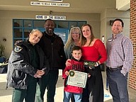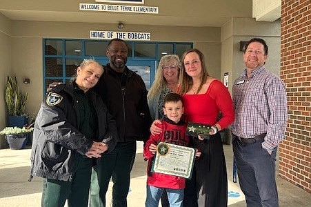 Belle Terre Elementary School second grader Bodhi Rivers receives Sheriff Rick Staly’s “Great Kid” Award for December 2025. Courtesy photo