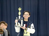 Sean Adrian Salvacion holds up his trophy and his number. Photo by Brent Woronoff