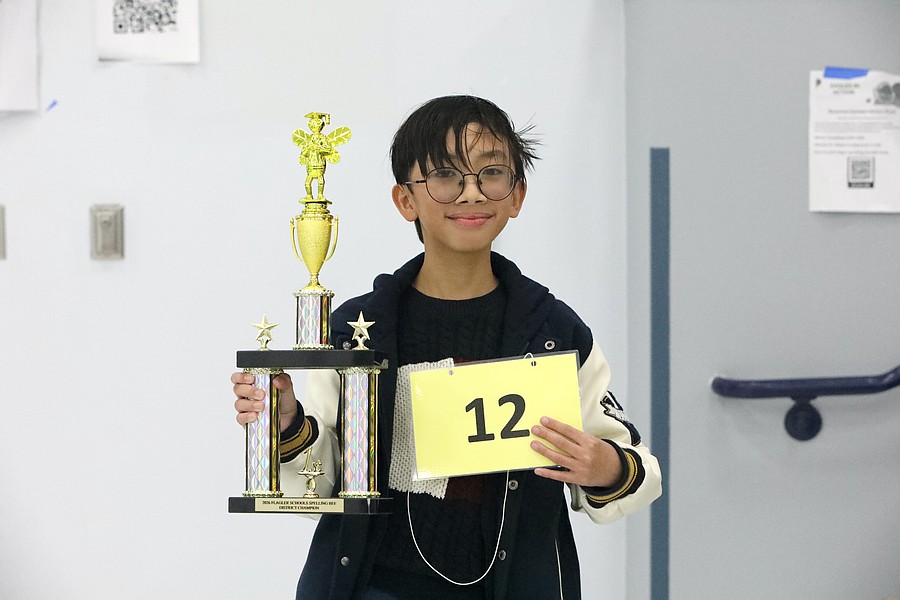 Sean Adrian Salvacion matched his number by correctly spelling 12 words, including the practice round. Photo by Brent Woronoff