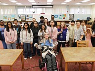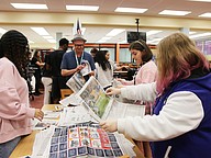 Students pack bowls in the Seabreeze media center on Thursday, Feb. 12. Photo by Jarleene Almenas