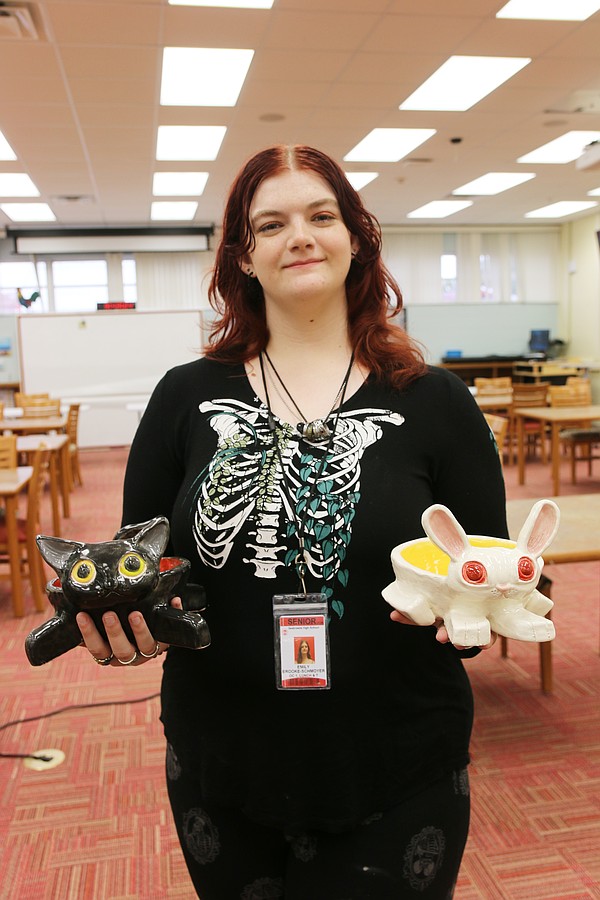 Seabreeze senior Emily Brooke-Schmoyer decided to make two animal-themed bowls: a black cat and a white bunny. Participating in the fundraiser was fun, she said, and allowed lots of room for creativity.